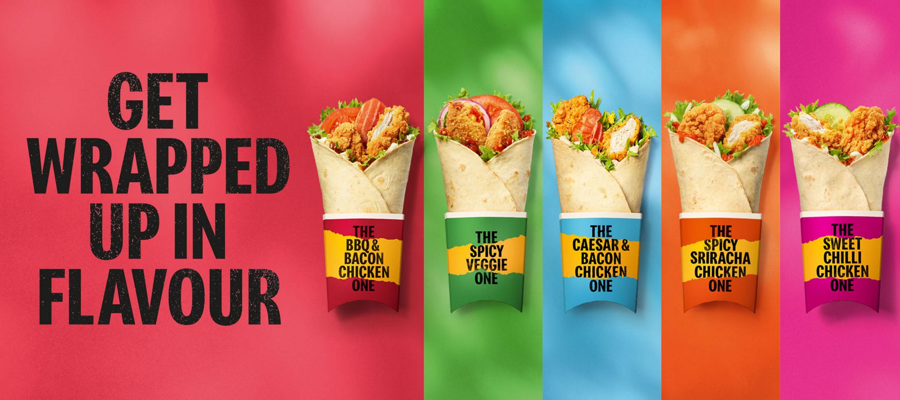Learn moreGet wrapped up in flavour with our delicious Big Flavour Wraps. You can choose from the New Caesar and Bacon Chicken One to our Spicy Sriracha Chicken One, or stick to the classics!